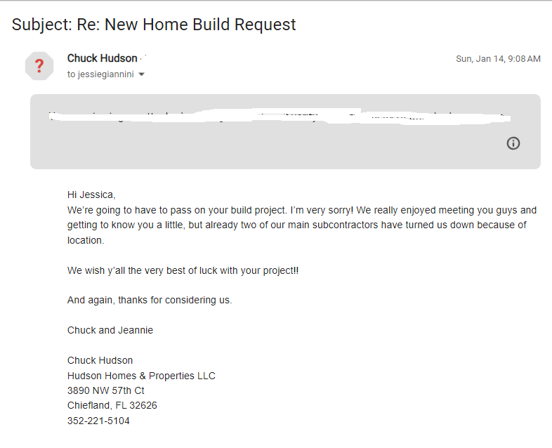 Since Covid we have been working on building our future home on the Farm and have the engineering plans to submit for a permit. The builders we were engaged with in Chiefland could not get their contractors out to the farm so we decided in the end to not build and just buy a home in Gainesville, which we did. During this time commuting from South Florida to Reddick, we would stay in our RVs till we had a home and sold our place down south. We had parked the RVs on our Farm and all know our dogs stayed in one and we stayed in another. Our neighbors know this as some came over to let our dogs out from time to time.