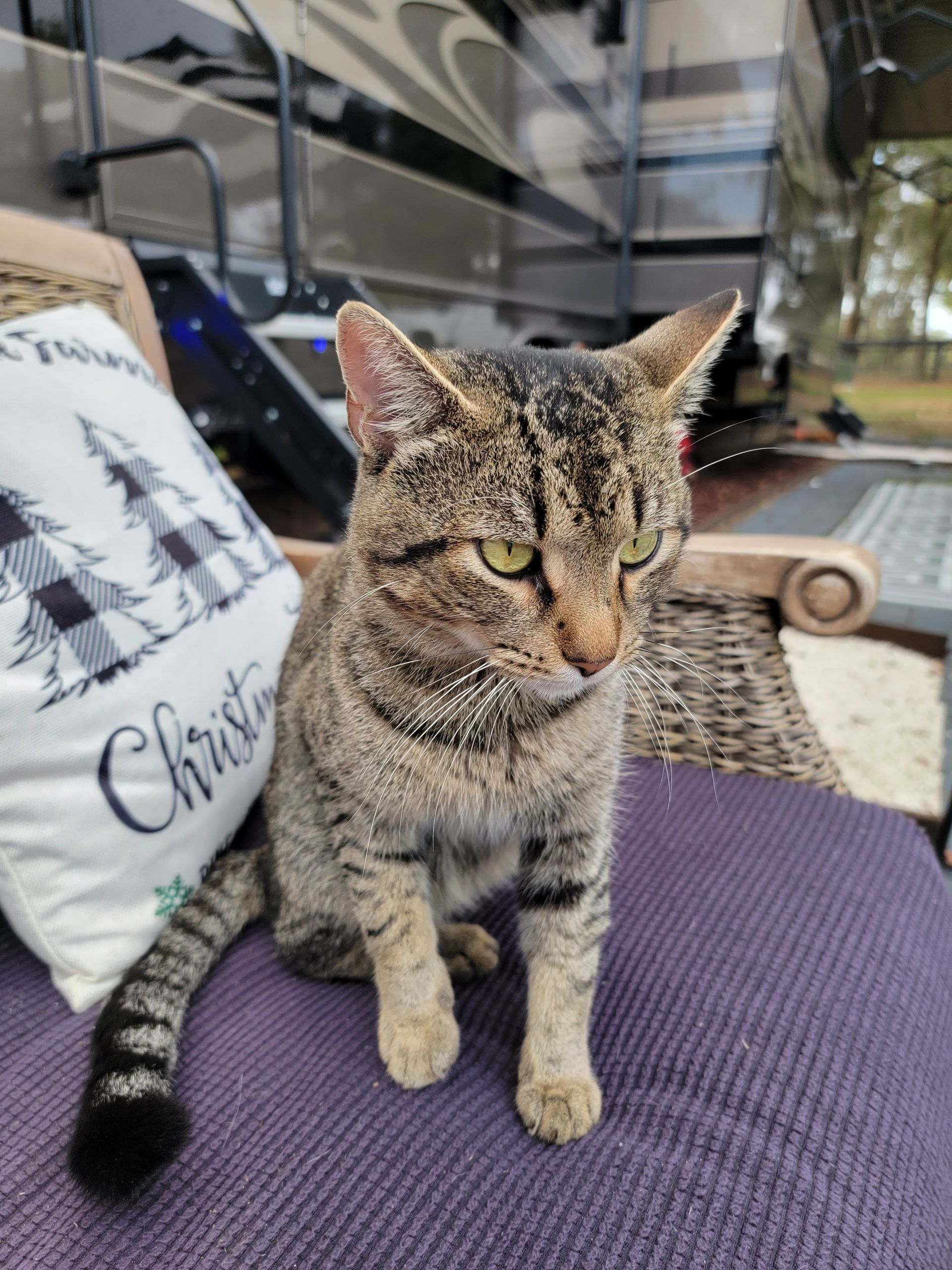 Trader Tom comes and goes as he pleases. We make sure to leave him a bowl of food out so he never goes hungry.